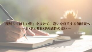 自分が感じたことを素直に相手に伝えると「考えすぎ」「気にしすぎ」そんな言葉を言われるたびに、気分が沈みました。”繊細に感じとる”自分を見せまいと「気にしない自分」を演じてきました。でも、HSPという特性を知り、自己理解が深まるに連れ演じ合わ...